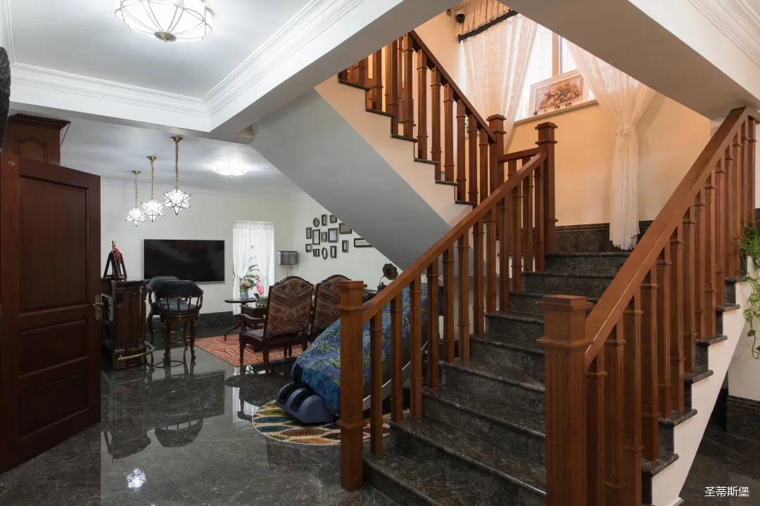 设计师根据业主喜好的风格进行设计,同时考虑了家庭成员不同的年龄层次,分别进行了不同氛围的营造,通过旋转楼梯进行空间贯穿,将不同空间的格调与氛围联系起来,达到和谐统一的效果。